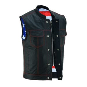 Men’s SOA Leather Biker Vest W/ USA Flag Lining
