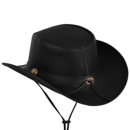 Whether tending to the ranch or managing daily errands, the Black Leather Cowboy Hat emerges as the quintessential final touch, effortlessly elevating any ensemble with its timeless appeal and sturdy construction.