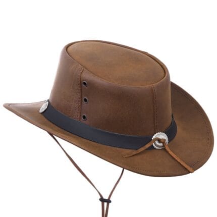 This hat boasts genuine leather, ensuring style and durability. Its adaptable brim enables a personalized fit, while side vent holes promote airflow, keeping your head cool in high temperatures. Plus, its waterproof construction guarantees protection from water, safeguarding your hat from damage.