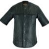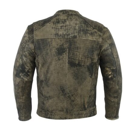Crafted from supple drum-dyed antique brown cowhide, this motorcycle jacket boasts a sleek scooter collar with a snap closure and concealed zippers for a polished appearance. Designed for the modern fit, it features fully opening zippered sleeve cuffs and practical details like vented zipper chest pockets, two lower zipper pockets, and dual back vents to enhance airflow.