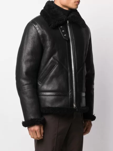 Introducing the epitome of timeless style and rugged sophistication: the Men’s Black Aviator Shearling Leather Jacket. Crafted to perfection, this jacket seamlessly combines fashion with function, making it a must-have addition to your wardrobe.
