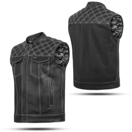Men’s Black Leather Diamond Stitch Motorcycle Vest