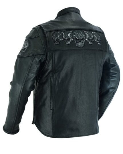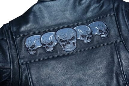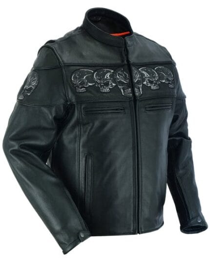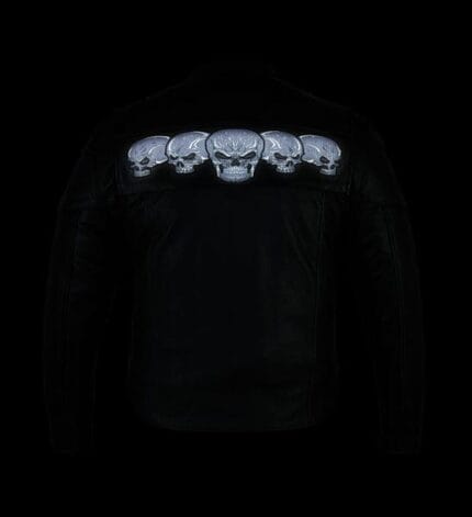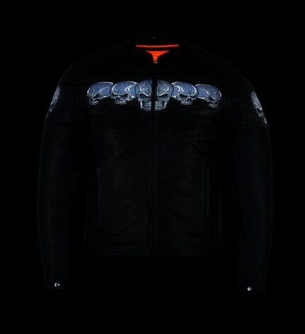 A fusion of style and functionality, this cowhide jacket boasts skull designs for nighttime visibility, concealed gun pockets, and ample ventilation. With a modern fit, blackout hardware, and high-performance insulation, it offers riders optimal comfort and protection on the road.