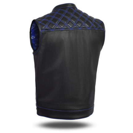 Men’s Blue Diamond Stitch Leather Motorcycle Vest
