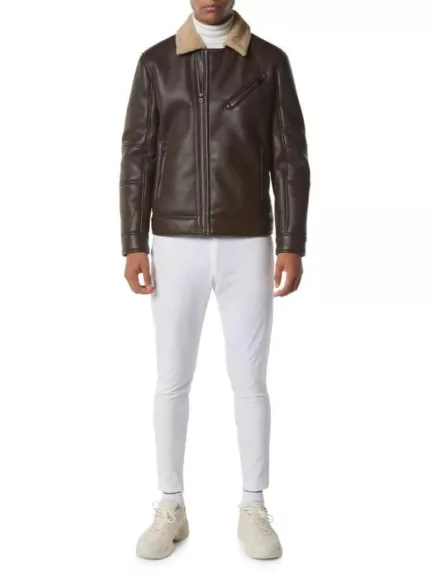 Crafted for the modern man, our Men’s Brown Leather Shearling Moto Jacket exudes rugged sophistication. Embrace the allure of genuine leather combined with cozy shearling lining, ensuring supreme warmth in chilly weather.