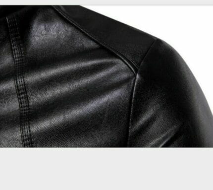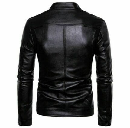 Men’s Motorcycle Biker Leather Jacket Stand Collar Long sleeve Zipper Slim Fit