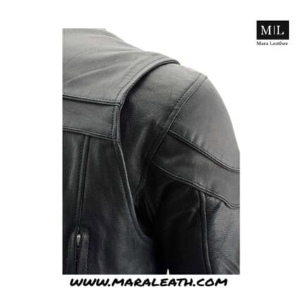 This premium milled hide nature leather jacket, 1.2-1.3mm thick, boasts a zip-out thermal liner, concealed inside pockets, multiple vents, and reflective piping for durability and style, featuring renowned YKK zippers for longevity.