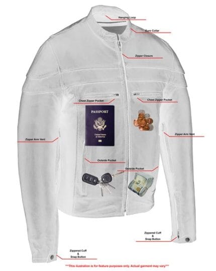 Men’s Natural Soft Leather Vented Motorcycle Jacket W/ Thermal Liner