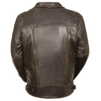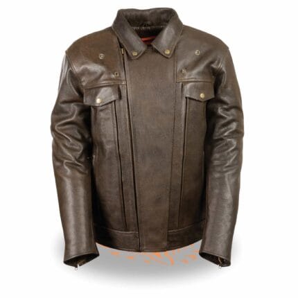 Men’s Retro Brown Leather Utility Pocket M/C Jacket