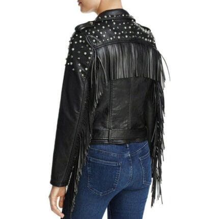 Women Fashion Silver Studded Punk Rock star Leather Biker Jacket Black All Sizes