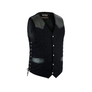 Black Denim Adjustable Motorcycle Vest W/Leather Accents